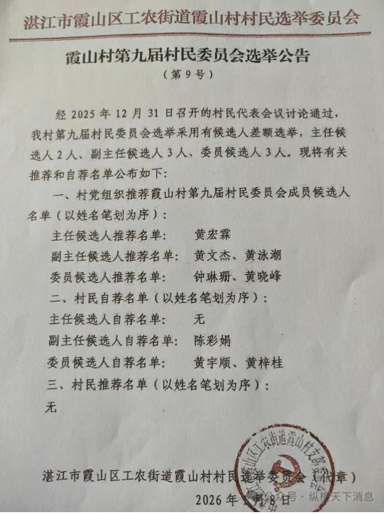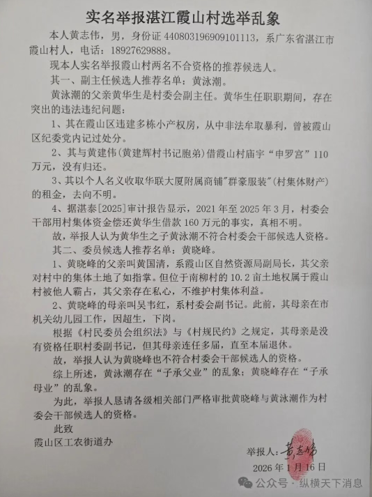 现本人实名举报霞山村两名不合资格的推荐候选人。